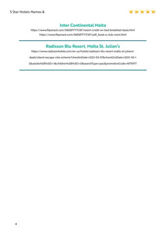 Radisson Blu Resort, Malta St. Julian’s https://www.radissonhotels.com/en-us/hotels/radisson-blu-resort-malta-st-julians/ deals/island-escape-mta-scheme?checkInDate=2021-05-07&checkOutDate=2021-05-1 2&adults%5B%5D=1&children%5B%5D=0&searchType=pac&promotionCode=MTAFIT