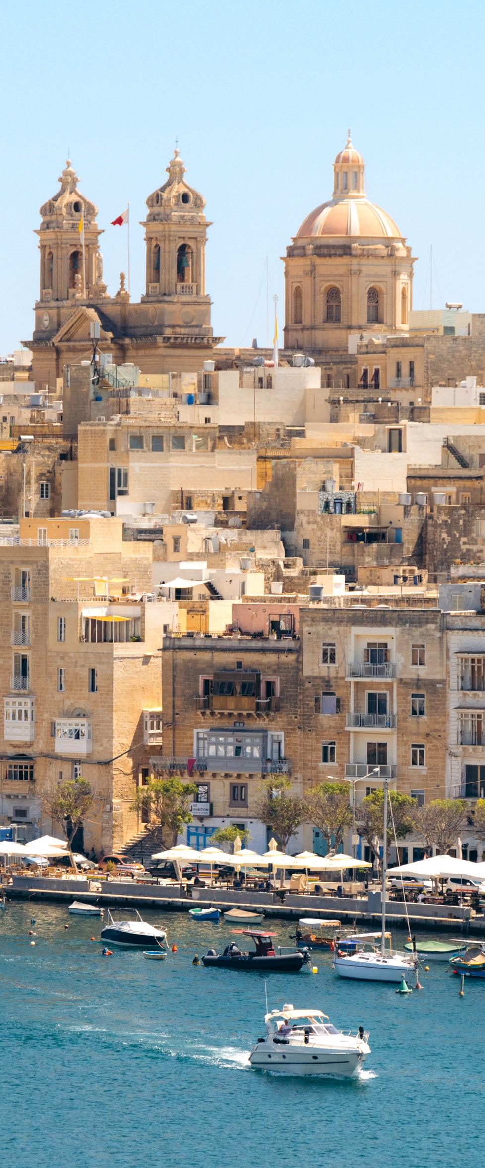 Valletta, the capital of Malta, sits on a peninsula flanked by two magnificent harbours. Established by the Knights of the Order of St. John, the city was designed as a fortified stronghold and has preserved its impressive and distinctive fortifications to this day. From its elevated position, Valletta offers sweeping views of its strategic surroundings, including Mdina, the historic medieval city. Valletta is, since 1980, a UNESCO World Heritage Site, being the only European capital city in its entirety on this prestigious list.