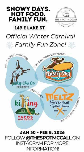 The McCall Senior Center is a cozy and welcoming Carnival stop, offering warm food, friendly faces, and a chance to support a great local cause. On January 31 and February 1 at 11 am, the Warming Hut opens, with a hearty Chili Feed from 12–4 pm that’s perfect for thawing out between events. On February 7 from 8–11 am, fuel up with a classic Pancake Breakfast. Visitors can also purchase official Carnival Beads, available at the Senior Center or downtown in front of Century 21. It’s a simple way to warm up, eat well, and be part of the community spirit that makes Winter Carnival special.