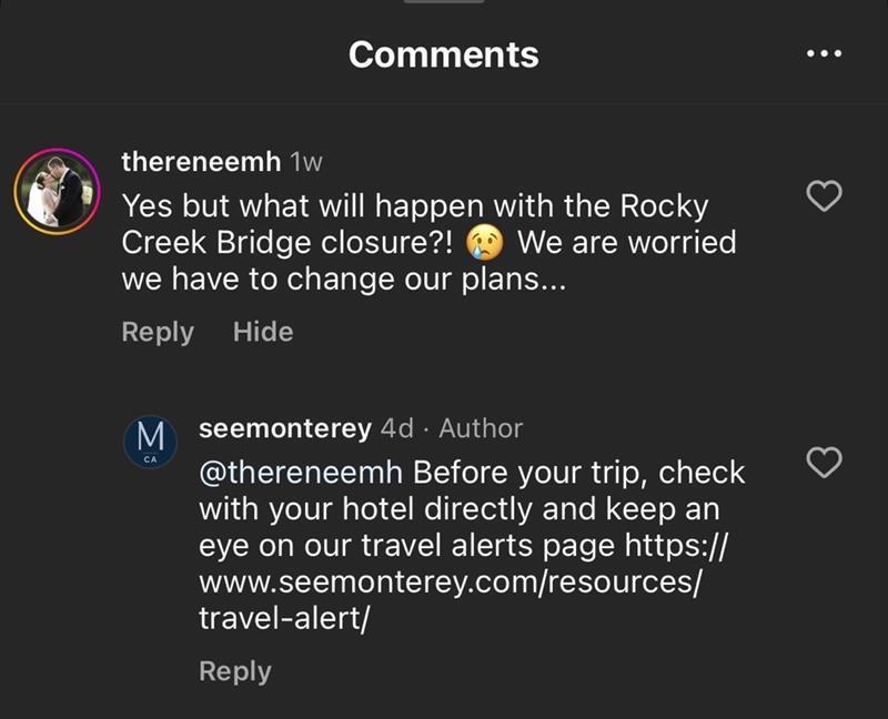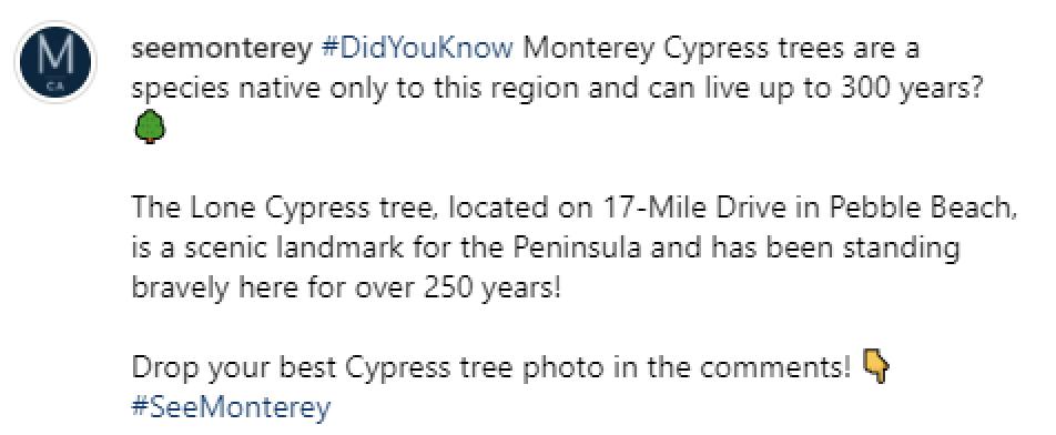 Sharing and engaging with user-generated content featuring Monterey County is the most powerful way of generating positive social proof.