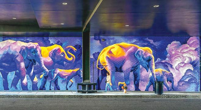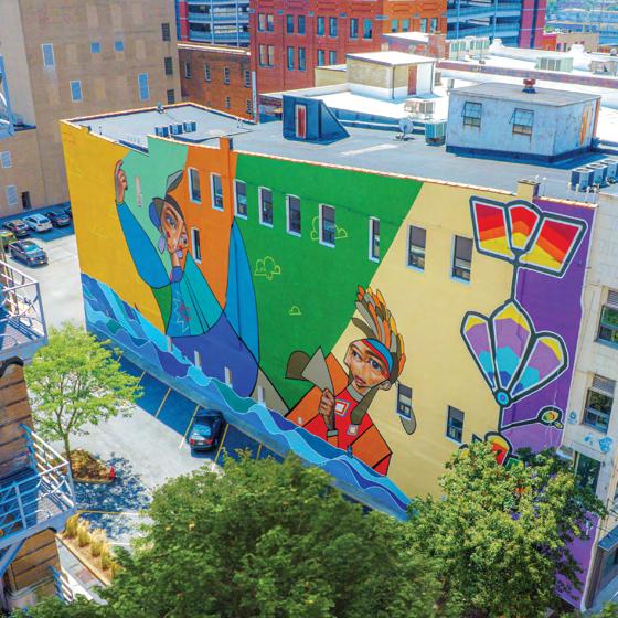 Explore a kaleidoscope of bold, colorful murals that bring the downtown streets to life with creativity and community spirit.