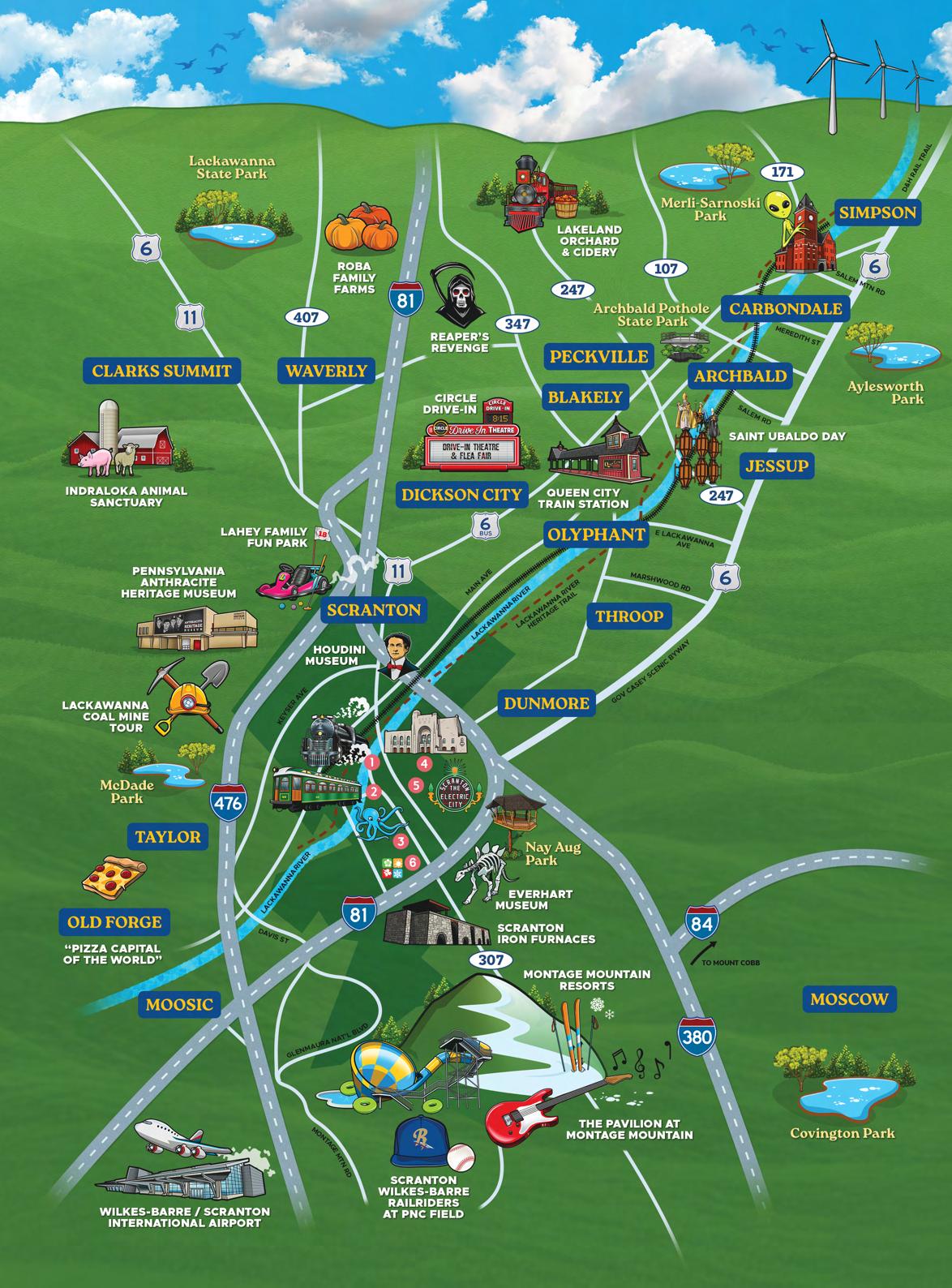 Whether you are planning your trip or are already here, the Lackawanna County Visitors Bureau has the information you need to ensure you have an amazing time. Stop in our Visitors Center at 135 Jefferson Ave. in Scranton, PA, Monday through Friday, 10 a.m. to 4 p.m., for brochures, guides, and maps, or check out VisitNEPA.org and explore what Lackawanna County has to offer 24/7.