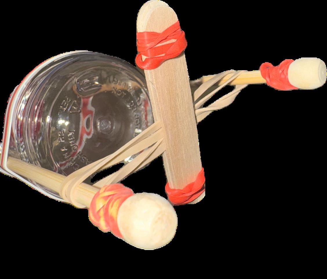 MATERIALS NEEDED: Plastic Bottle (1), Popsicle Stick (1), Rubber Bands (12), Chopsticks (2), Scissors or Craft Knife (1)