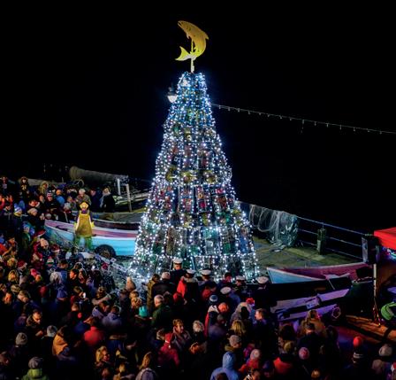 Admire this unique Christmas tree made from crab and lobster pots, decorated with LED lights and topped with a leaping salmon. The tree is lit during a special event with carol singers, followed by a firework finale.