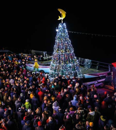 See the unique and fun Filey Fishtive Tree made from crab and lobster pots representing the fishing heritage of the town and the Yorkshire coast. The tree is topped with a leaping salmon and decorated with lights.