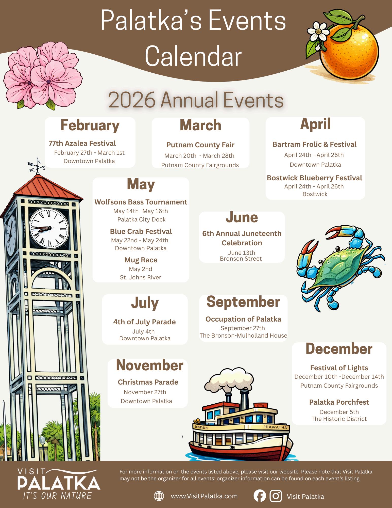 Our community calendar highlights the events that make Palatka special and we want to include yours. Submit your event to be featured on our website and in future editions of The Palatka Post