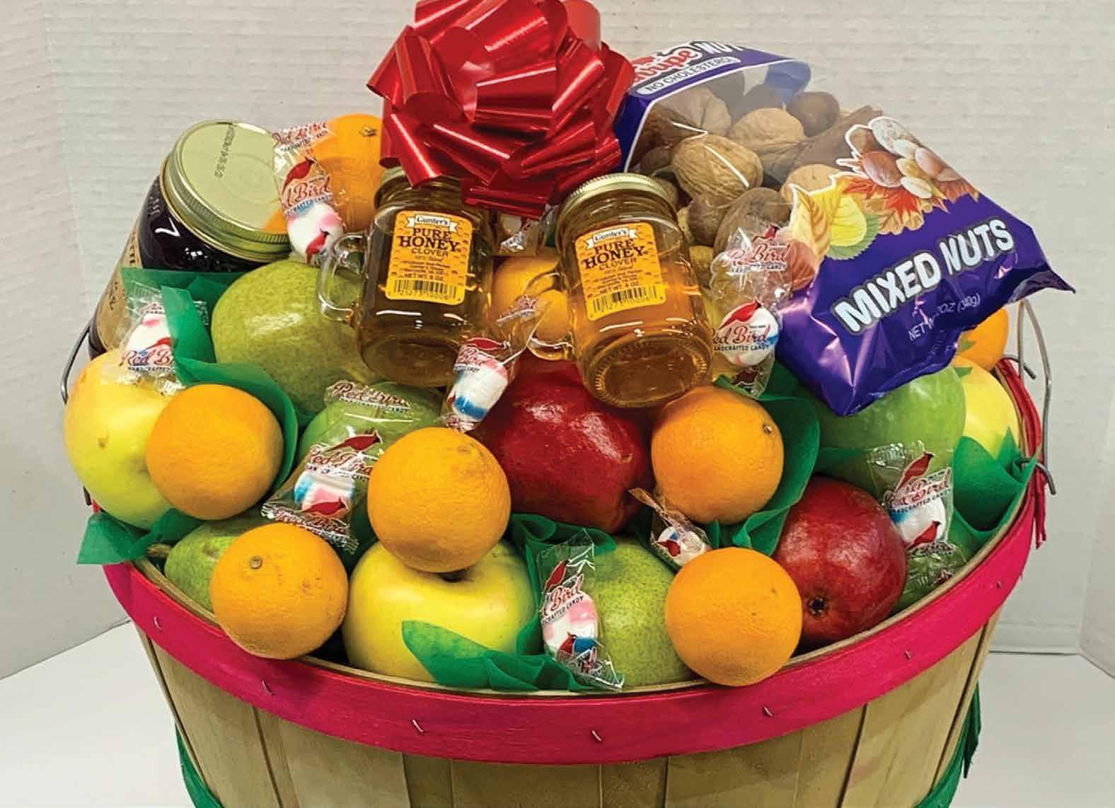 The Christmas season is a wonderful time to delight your friends and family, thank clients, reward employees, or spread joy to anyone else you care about. A Christmas Fruit Basket is a wonderfully delicious gift that can bring a smile to anyone’s face! Every Fruit Basket we make is made fresh when you order and contains 100% fruit and NO FILLER, so every lucky recipient of a Wood’s Produce Fruit Basket is getting the season’s freshest fruit and a great value too! Our baskets are also customizable with a variety of tasty add-ons including Local Honey & Jams, Country Ham, and Christmas Candy!