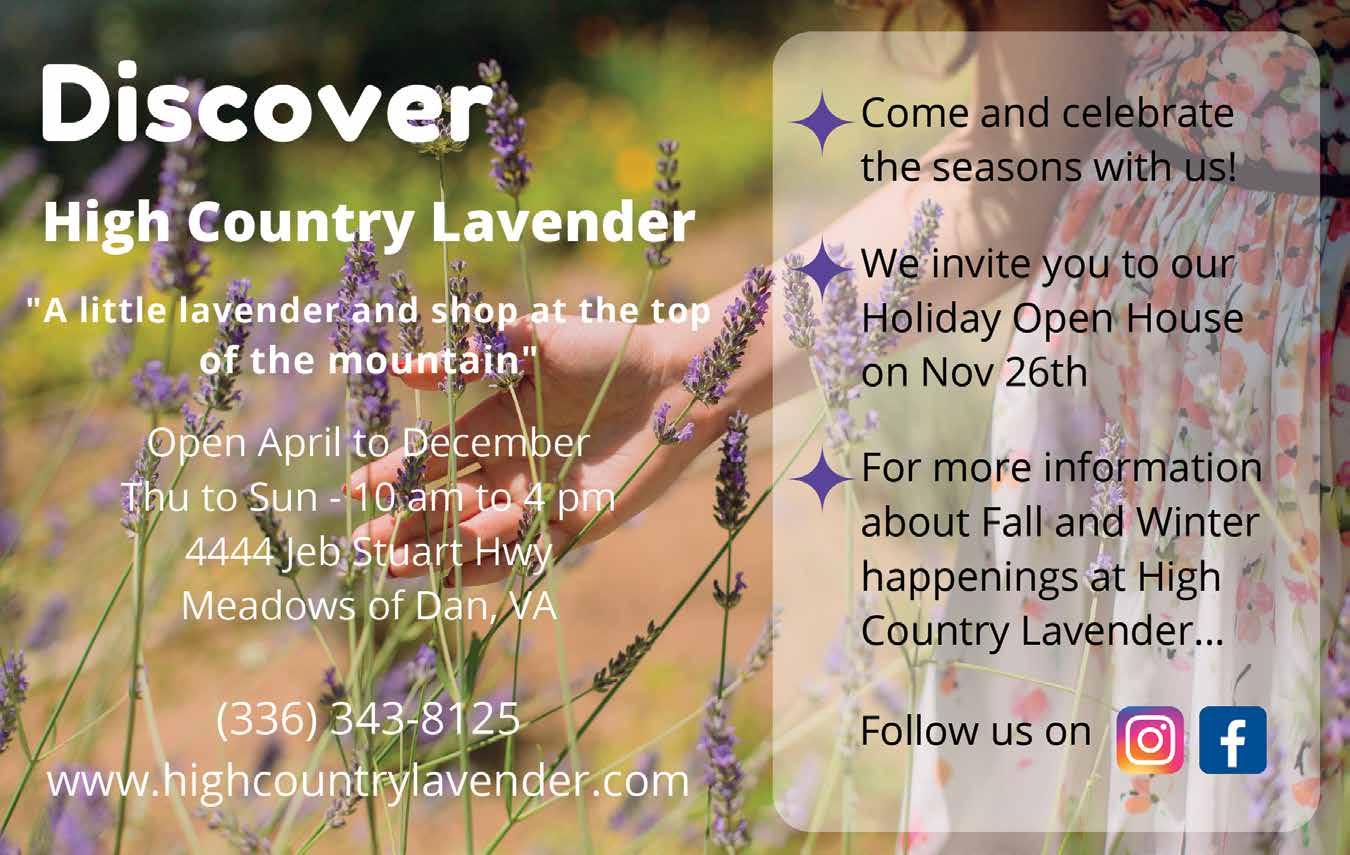 As the sun begins to settle over the colorful mountains, I hope you take time to cozy up with this issue of the Patrick County Magazine and enjoy reading about all our fall and winter events. Either through reading or coming in person, I hope you can find yourself here.