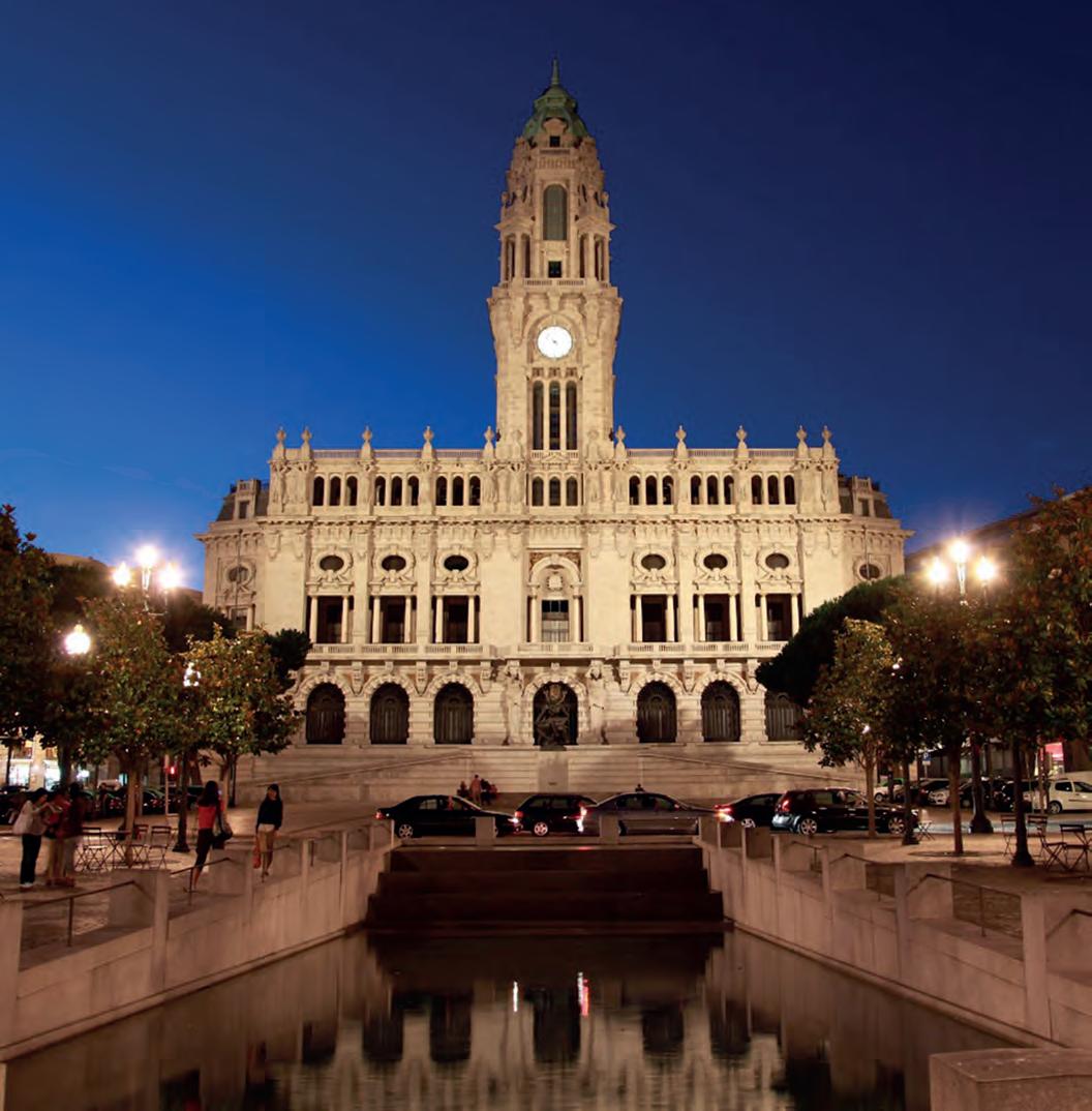 The downtown of Porto, the central part of the city, where we can easily and pleasantly walk on foot. That is the location of the civic centre of the city, in the Avenida dos Aliados, topped by the City Hall.
