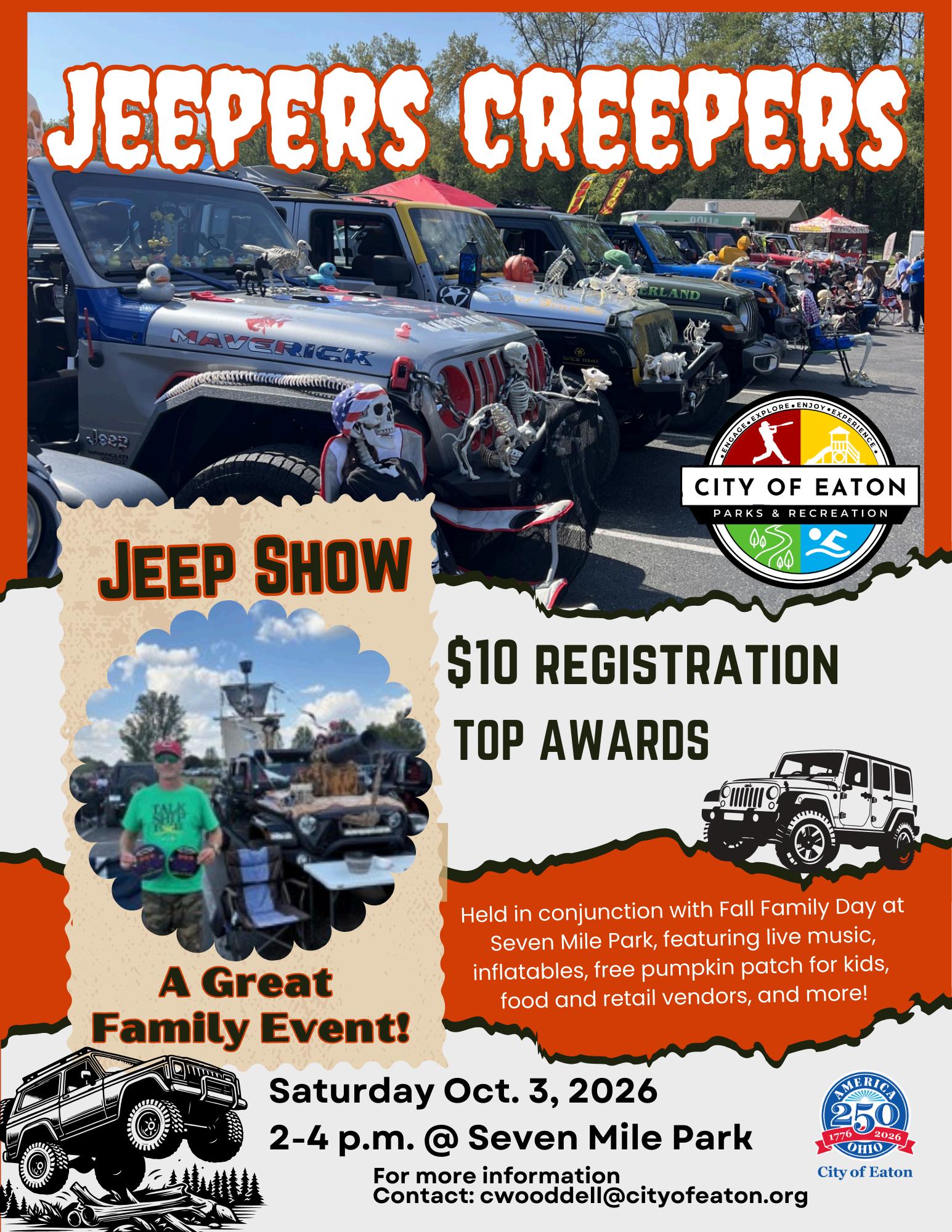 Join EPAR for Fall Family Day at Seven Mile Park! This exciting event features fun for all ages and includes the Jeepers Creepers Jeep Show!