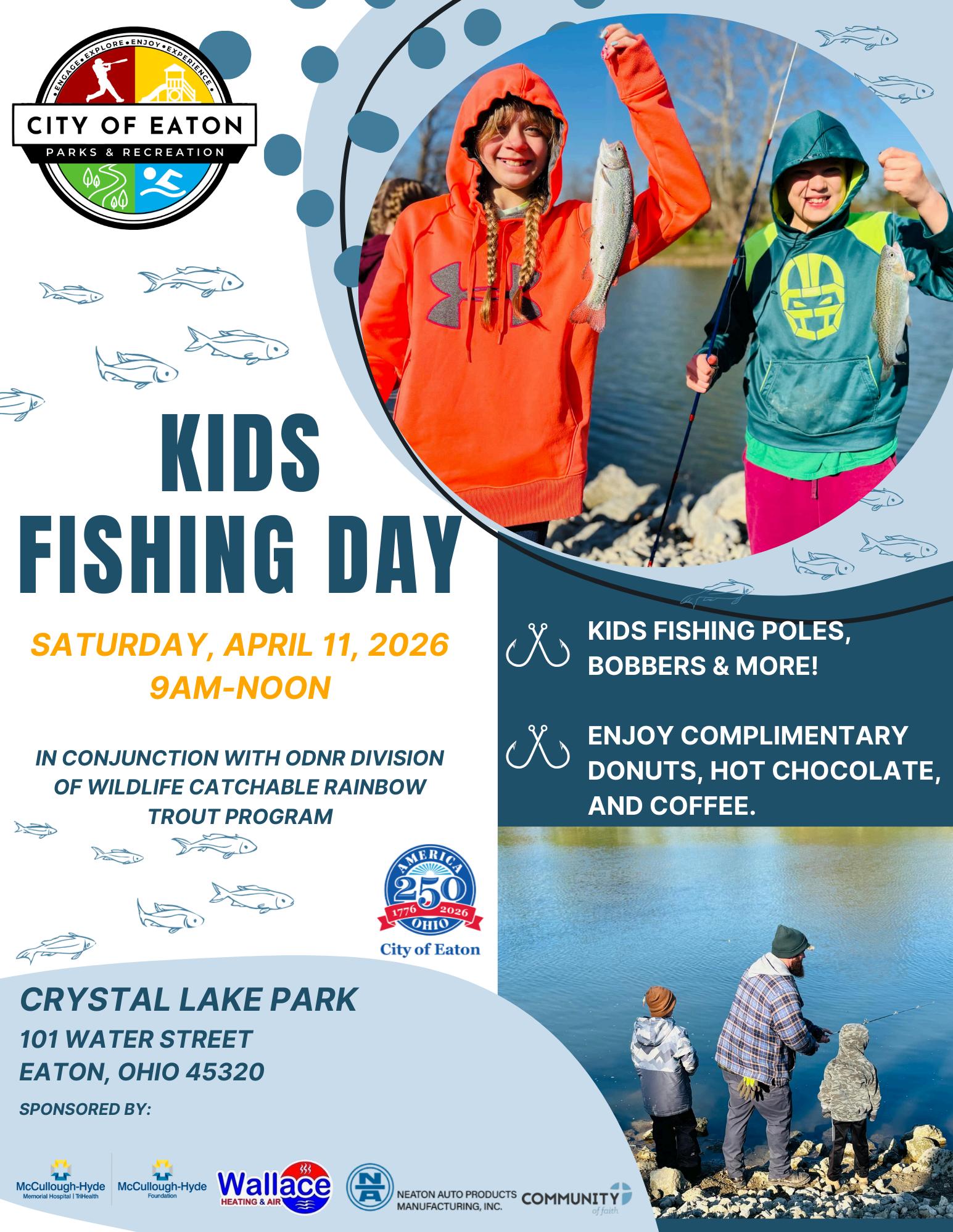 Join us for the 4th annual Kids Fishing Day at Crystal Lake in conjunction with ODNR Division of Wildlife’s Catchable Rainbow Trout Program.