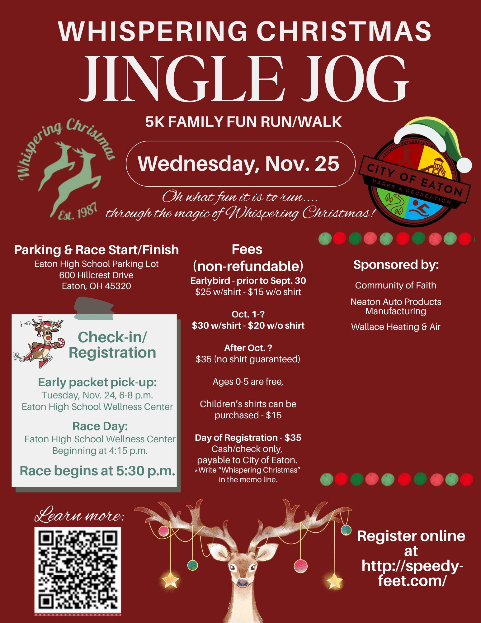 For those people who want to get a fun walk or run 5K in before Thanksgiving dinner and kick off the holiday season with the splendor of the Whispering Christmas lights at Fort St. Clair.