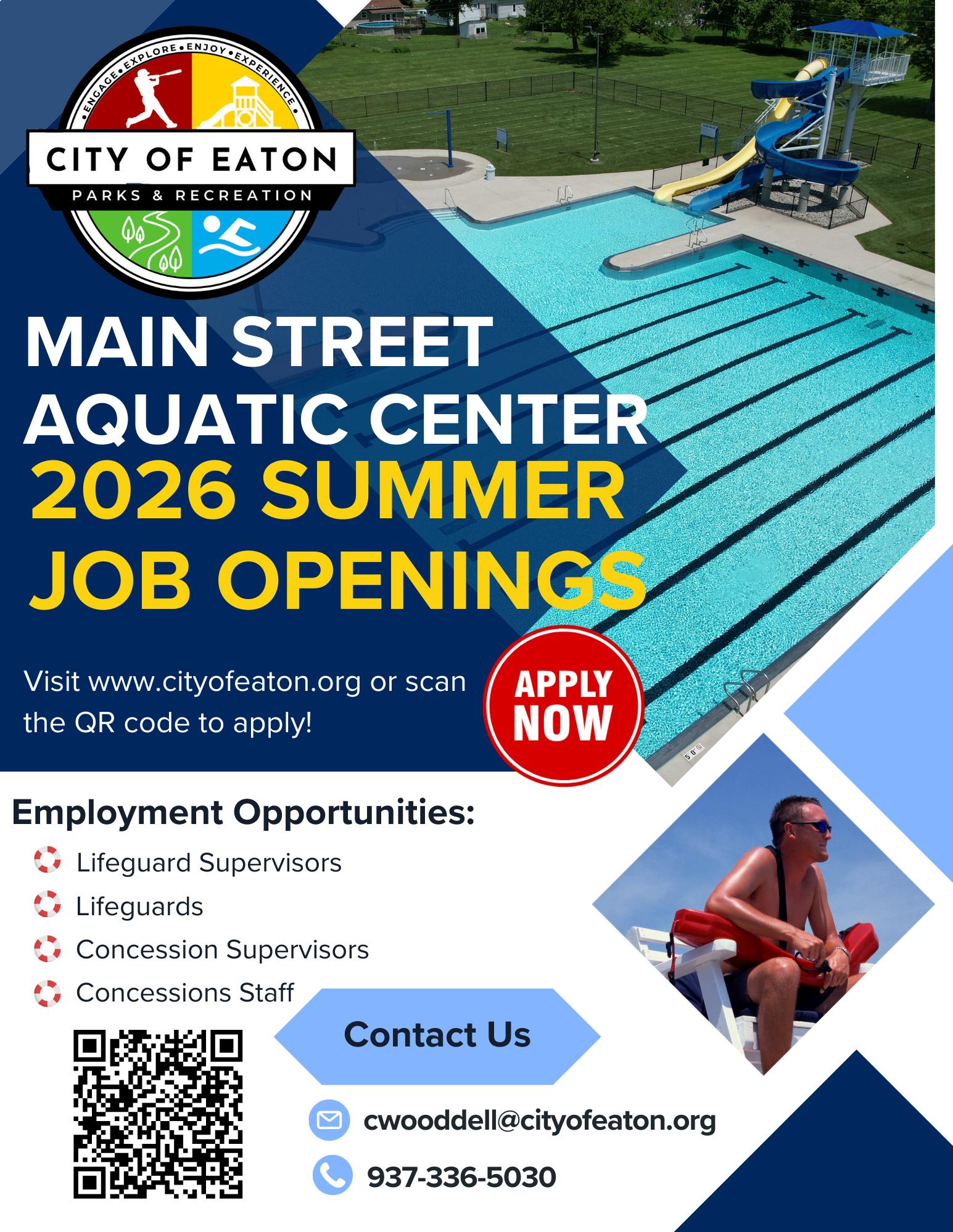 Main Street Aquatic Center: Features a splashpad, zero-depth entry activity pool, dumping buckets, two large waterslides, lap lanes, picnic shelter and concession stand.
