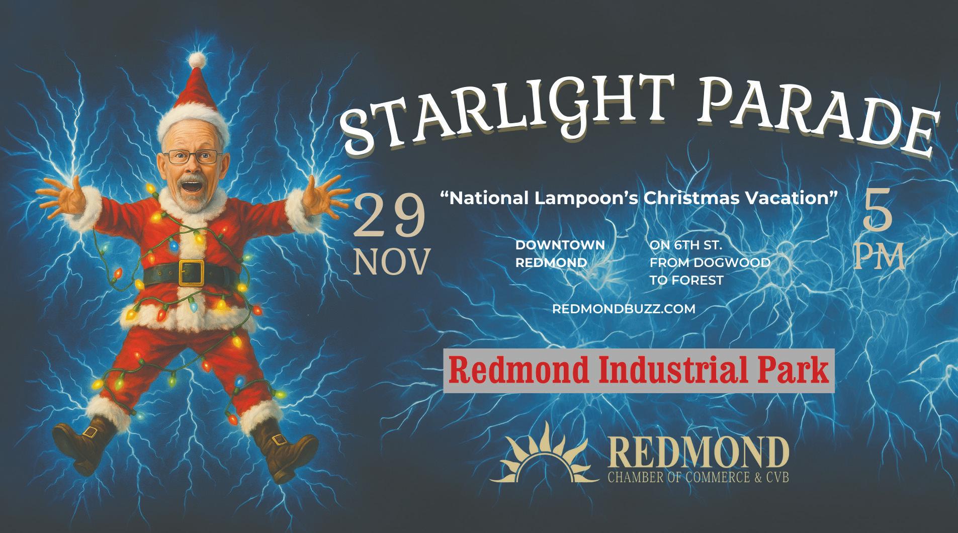 Join The Redmond Chamber of Commerce and Griswold’s on November 29th for the Starlight Parade in Downtown Redmond! With Cousin Eddie’s festive float, Uncle Lewis’s questionable holiday cheer, and Clark’s… well, Clark’s enthusiasm, you’ll experience a holiday spectacle like no other. Clark’s antics might just steal the show.