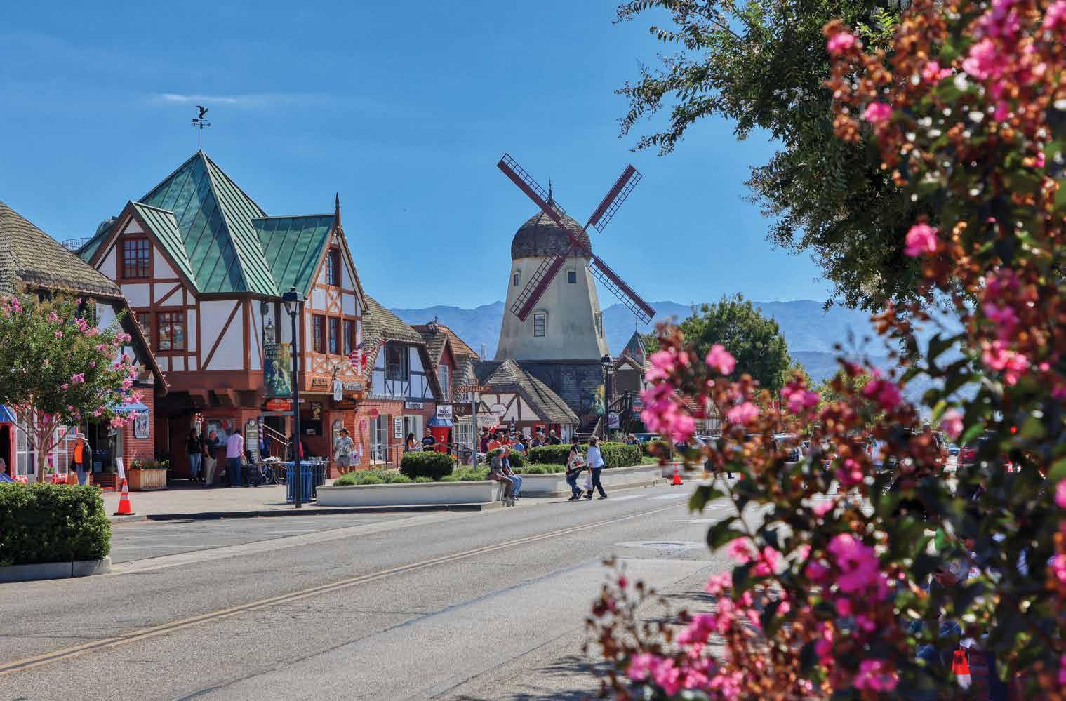 SOLVANG (PAGE 22) Known as "Little Denmark," Solvang was founded in 1911 by Danish immigrants, and while it still retains its rich heritage, it also has plenty of modern offerings. Danish traditions thrive here, from the architecture and windmills to the beloved æbleskiver pastries. The town is a picturesque reminder of its European roots, with festivals, old world trolleys and half-timbered buildings transporting you to another time and place.