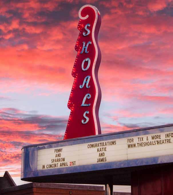 e Shoals is made up of four cities, including Florence, Sheffield, Tuscumbia and Muscle Shoals. Each community offers something unique and different—from history and culture to great food and outdoor adventures! Florence is home to the University of North Alabama, a Division I college with over 10,000 students. e campus borders the downtown with pristine landscapes over several city blocks.