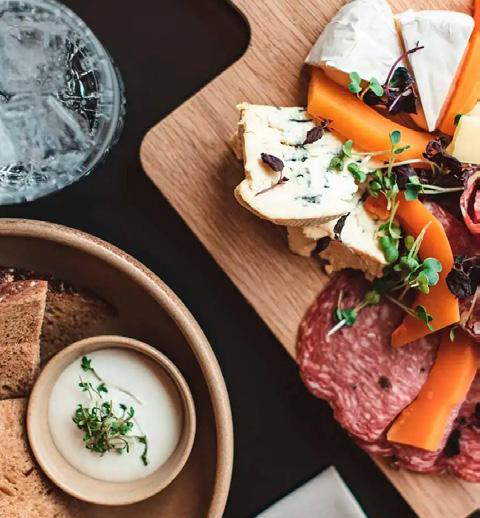 Serving freshly-grounded organic coffee and organic tea, as well as a range of innovative and traditional bistro dishes and a host of beverages. We offer charcuterie, salad, hot dishes and cakes. We meticulously craft each cocktail and serve wine straight from our own well-stocked wine cellar, Gilið. See our full menu on the webpage.