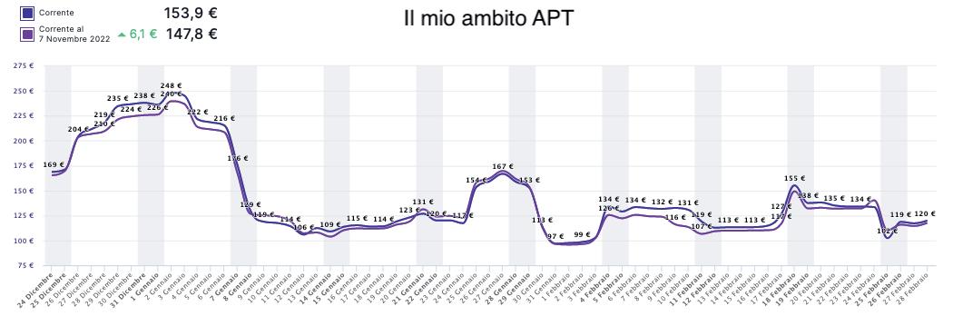 Occupazione giornaliera della mia struttura vs. zona (APT) e vs. gruppo di competitor