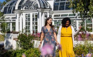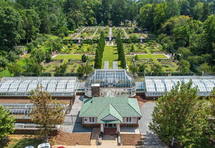 the Reynolda Welcome Center to learn more about the estate’s history before stepping into the fully restored Brown Family Conservatory. Built in 1913, its striking curved glass architecture and exotic plants on display provide a breathtaking gateway to four formal acres of Reynolda Gardens, just on the other side.