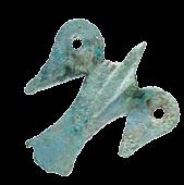 3. Bronasta zaponka, 1. stoletje, in železna zaponka, 3. in 4. stoletje, za spenjanje oblek.
