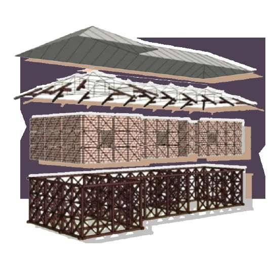 Taq timber construction is a combination of wood and unreinforced masonry laid on weak mortar gives the building the required flexibility and uses traditional architecture and material.