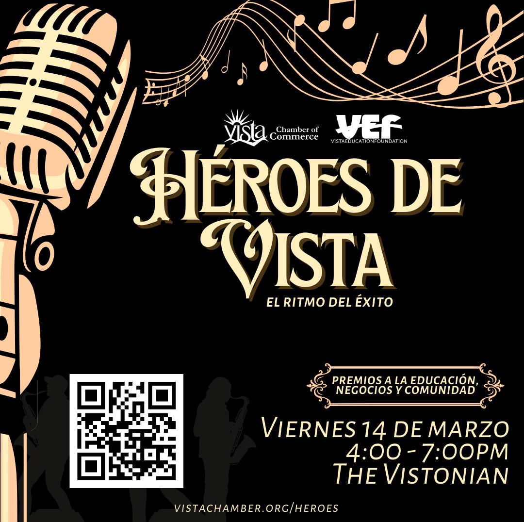 Gala Heroes de Vista: Viernes, 14 de marzo de 4-7pm en The Vistonian (306 S Santa Fe Ave.). Acompáñenos mientras honramos a miembros de nuestra comunidad con premios en educación, comunidad, y negocios.
