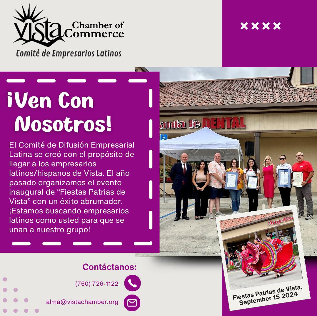 Eventos continuos de la Cámara: La inscripción para asistir a eventos se puede hacer en www.vistachamber.org
