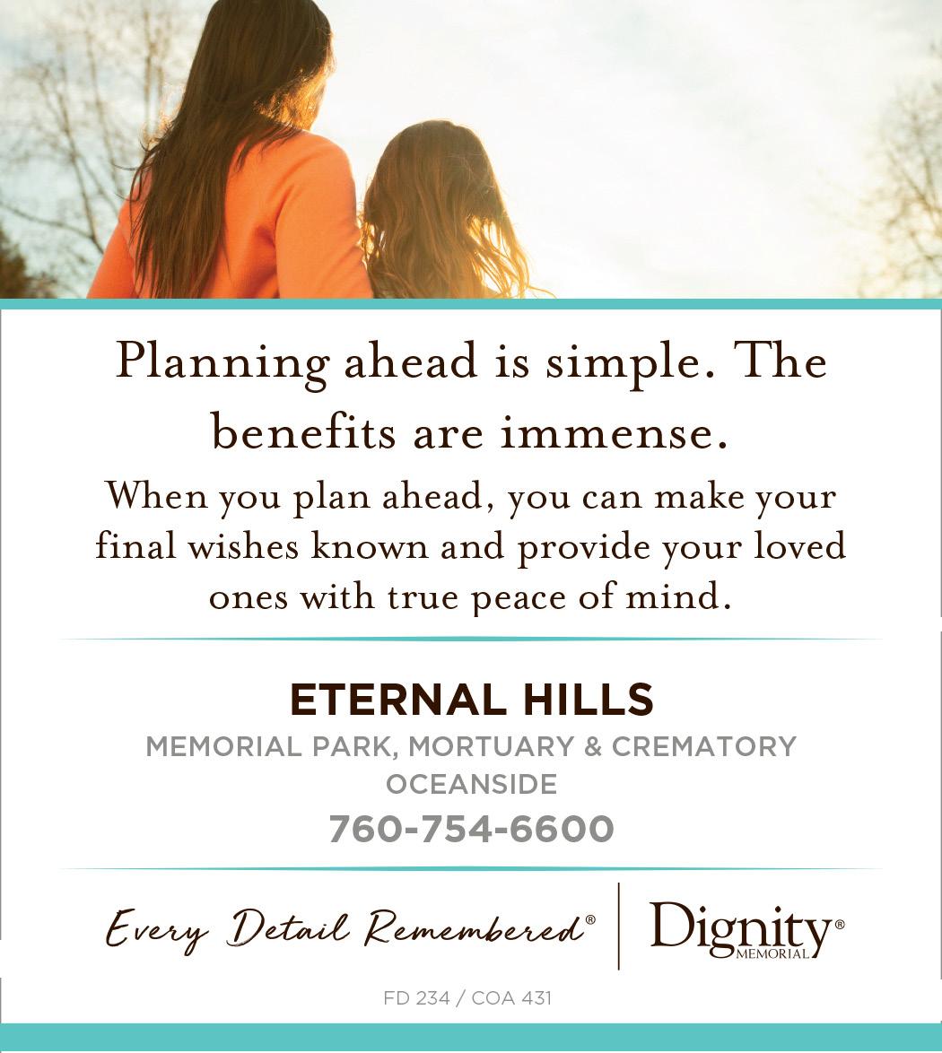 38 VISTACHAMBER.ORG Creative Services 1600 North Kraemer Blvd. | Anaheim, CA 92806 | (714) 538-3881 Carlsbad office: 2720 Loker Ave West, Suite P | Carlsbad CA 92010 www.advantageinc.com Family Feast: 1 Large 2 topping pizza , spaghetti, salad & bread $36.95 (dine in) 988 Civic Center Drive • Vista, CA 92083 • (760) 941-3900 •FINE ITALIAN FOOD• Large 1 topping pizza $12.95 (limit 2, carry out) 2 Large 2 topping pizzas $23.00 www.mamanpapaspizza.com Use Grub Hub or Door Dash "Your who/esale e/eclrical and telecommunka.tion:s material pro vider"