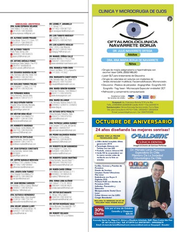 DR. LEONEL F. JARAMILLO P. P. Gómez 117, 2411852 / 099 9877321 dr.leoneljaramillo@hotmail.com DR. LUIS TAMAYO MUECKAY Edif. Udimef 2 PB, Of. 3 2680573 / 099 9427920 DR. LUIS ALBERTO HIDALGO Vélez 1.604 y José Mascote 2371257 / 099 9311604 hidalgog74@hotmail.com DR. MANUEL ZÚÑIGA CALLE Baquerizo Moreno 1.119, E. Plaza. 2566497 / 099 9182531 www.esterelidad-inseminacion.com DRA. MANUELA YUEN CHON Clínica 6 de Marzo 1415 y Ayacucho 2 413555 / 413562 DRA. MARGARITA CABOT COSTA Cdla. Kennedy Vieja, 3ra. Oeste 101 2285225 / 099 7022269 macabot@cablemodem.com.ec DRA. MARÍA GENCÓN GUAMÁN Clínica San Francisco, Torre Médica 2 6024111 / 099 5059765 www.dramauxgencon.com DRA. MARÍA VILLAMAR Cdla. Kennedy, Novena Oeste N.109 2294663 / 2290419 / 2398263 www.idiag.ec DR. OCTAVIO ORTIZ PERALTA Clínica Kennedy Policentro, Beta 2292473 / 099 9750163 octortiz@hotmail.com DRA. PATRICIA LARREA SUÁREZ 9 de Octubre 1701 y Av. del Ejercito 532402 / 0985937007 patricialarreasuarez@hotmail.com DR. PEDRO VALDIVIESO RIVERA Chimborazo 3.310 y Azuay, 2441725 / 099 8628276 valdivieso53@hotmail.com DR. ROBERTO BLUM SAMANIEGO Omni Hospital P 7, Cons. 701 6045884 / 099 2908114 maroblumsa@hotmail.com DR. ROBERTO CASSIS MARTÍNEZ Clínica Kennedy, Sección Beta P 1 2393349 / 099 9421022 robertocassism@hotmail.com DR. RUBÉN DARÍO ZÚÑIGA Torre Médica San Francisco 2, P 1 6009660 / 09 99852536 rudario27@hotmail.com DRA. SONIA LUNA ALCÍVAR Edif. Udimef 1, P 4, Of. 406-B 2680364 / 099 9618625 sonialunaalcivar@hotmail.com DR. VÍCTOR BUSTAMANTE Av. Olimpo 108 y Calle E 2394764 / 099 4008142 vebustamante@hotmail.com DR. VÍCTOR RODRÍGUEZ VACA Clínica Alborada 7ma etapa Mz. 737 2645588 / 099 618467 DR. ROBERT DELGADO Rosendo Avilés 701 y La Habana