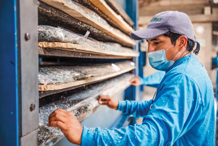 En la planta de transformación de resina reciclada se procesa entre 1.000 y 1.200 toneladas al mes, lo que equivale a cerca de dos millones de botellas producidas cada día. “Actualmente, estamos en proceso de aumentar la capacidad de producción, pues tenemos el gran desafío de aportar al incremento de la tasa efectiva de reciclaje del país, que se sitúa en un 45 por ciento en promedio de todas las botellas PET que genera Ecuador al año”, asegura Javier Díaz, director de