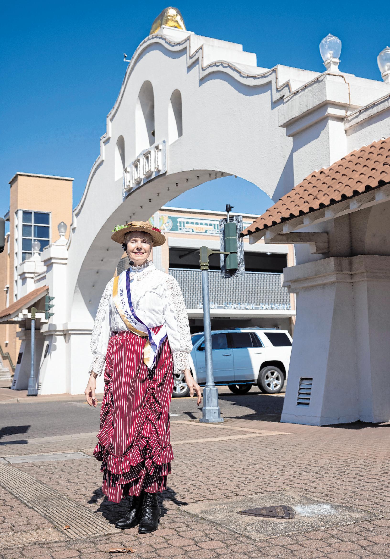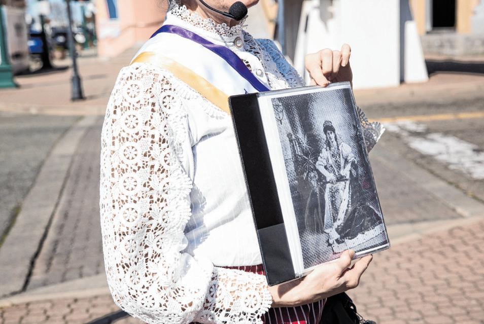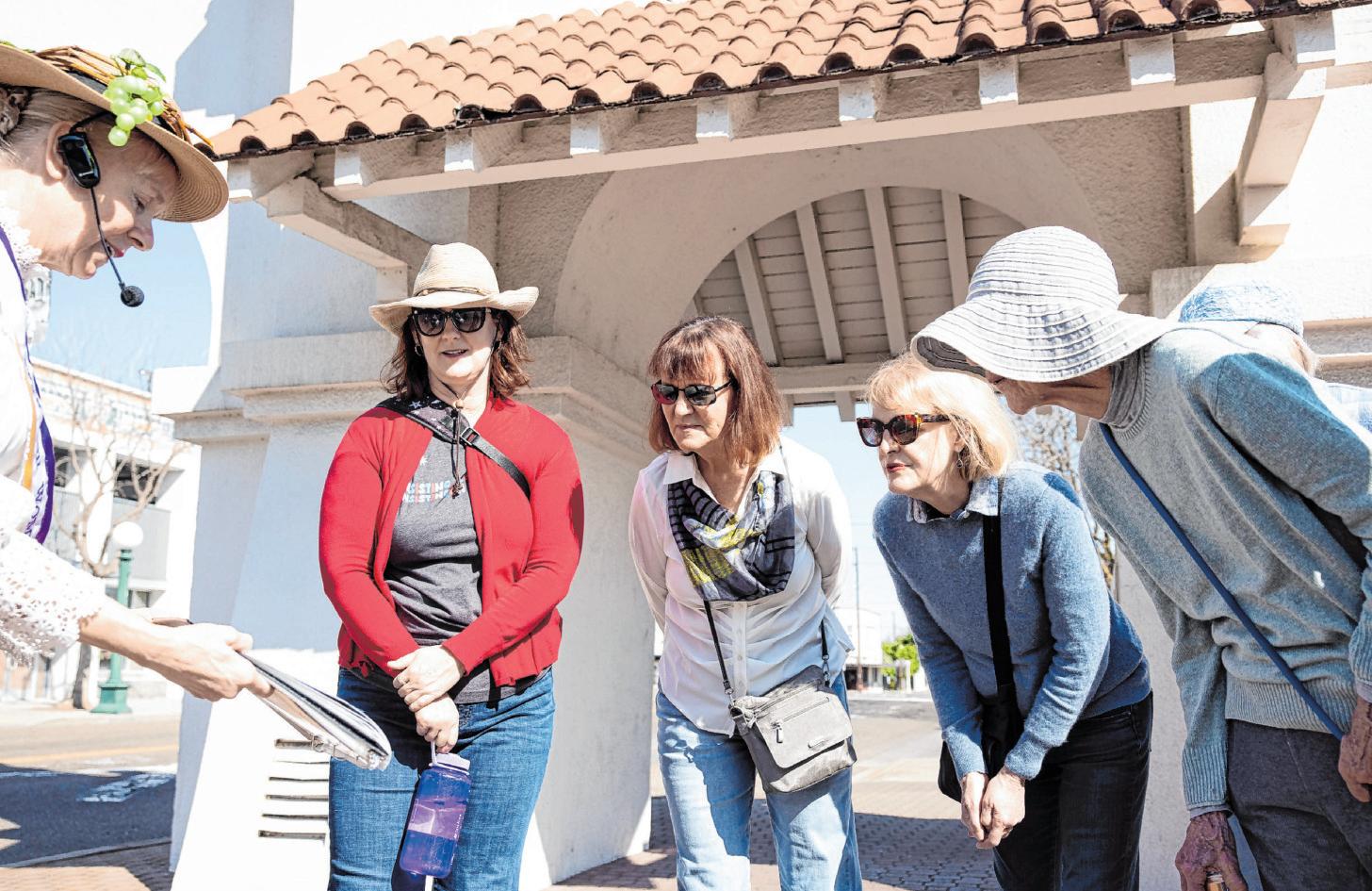 The “grand finale,” according to tour guide Alane Dashner, is on the marble steps of the Woman’s Club of Lodi, where Dashner, in costume, impersonates Laura de Force Gordon, a nationally known suffragist and Lodi’s most famous