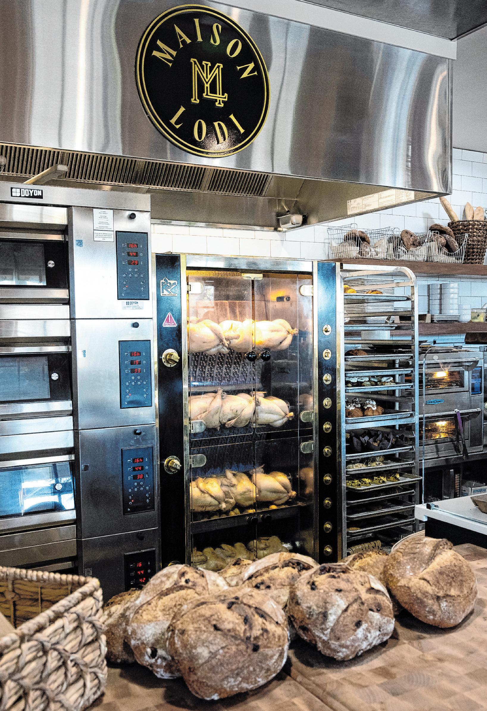 Maison Lodi opened in February, replacing the hotel’s Towne Corner Café & Market. Designed to look like a high-end, modern farmhouse, the open kitchen and bakery space celebrates Frenchstyle cuisine. Highlights include rotisserie-roasted chickens, quiche, croissant sandwiches and classics such as chicken salad tartine on country levain plus a jambon beurre and fromage sandwich stuffed with Parisianstyle ham, aged Comté cheese, Straus organic butter and cornichons on a baguette.