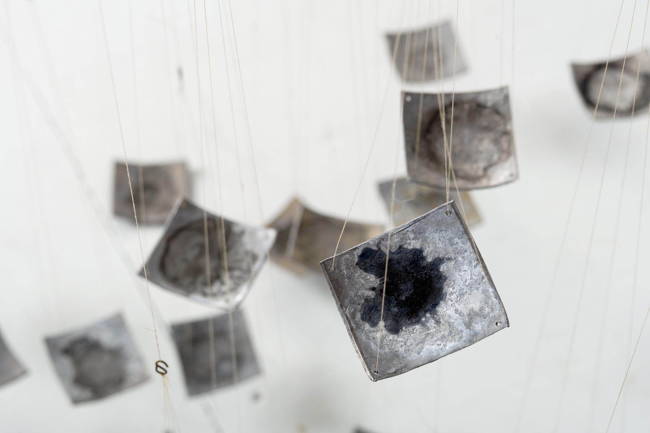 2017 lead, wax, washi paper, ink, pigment, wire 31 x 32 x 3 inches