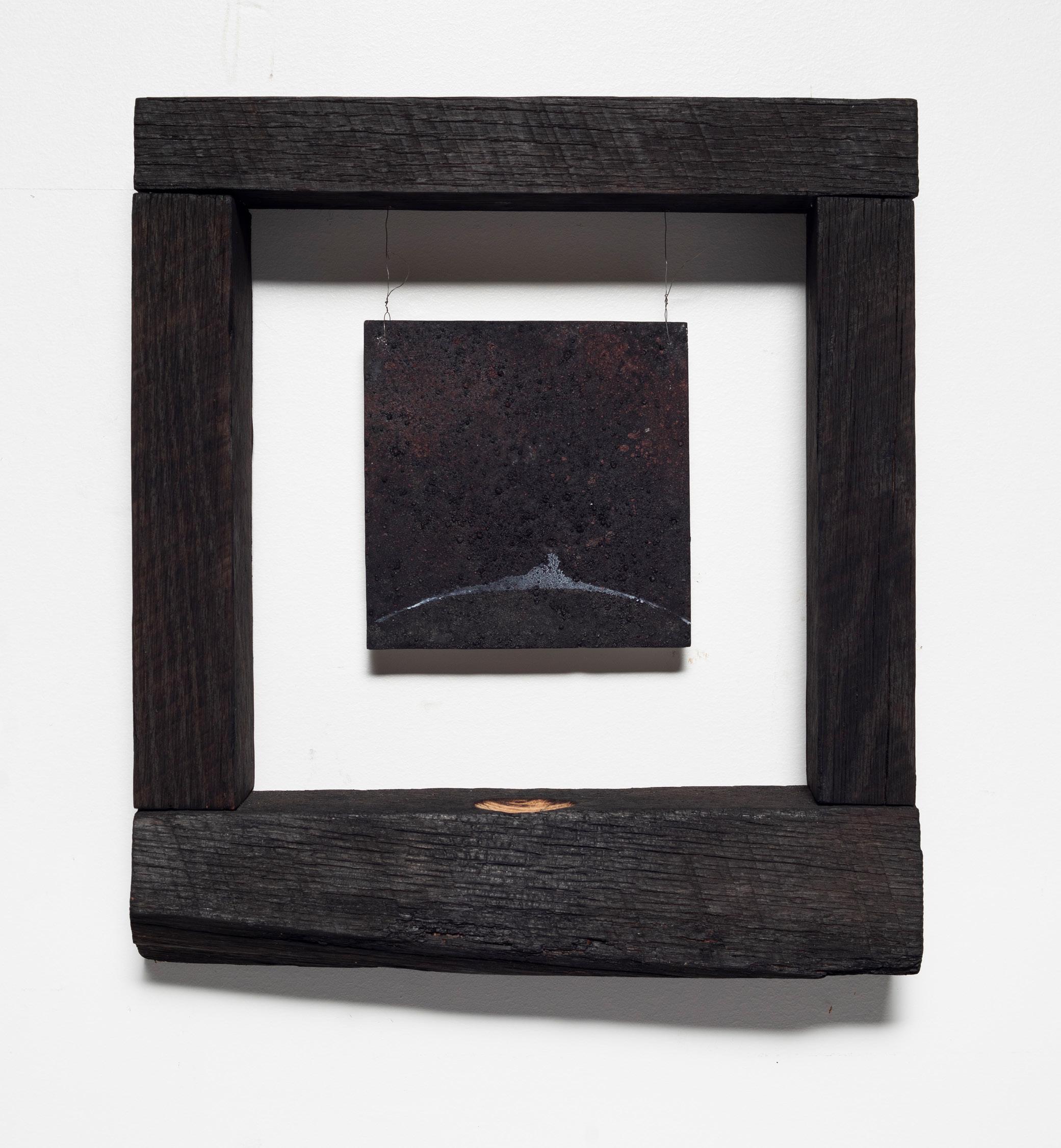 2020 charred wood, plaster, iron oxides, gesso, pigments, wire 14.5 x13 x 3 inches