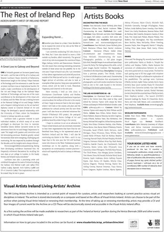 Visual Artists Ireland Living Artists' Archive The VAI Living Artists Archive is intended as a central point of research for curators, artists and researchers looking at current practice across visual art disciplines in Ireland. The archive is stored electronically on a computer and based at the offices of Visual Artists Ireland. Artists can choose to be part of the archive when joining Visual Artist Ireland or renewing their membership. At the time of taking up or renewing membership, artists may provide a CV and four images of current work for the Archive on a CD. These will be electronically stored and accessible in the Visual Artists Ireland office. As a first outing, the archive will be made available to researchers as part of the 'Ireland at Venice' pavilion during the Venice Biennale 2009 and other events in which Visual Artists Ireland take part. Information on how to get your incuded in the archive can be found at www.visualartists.ie/ap_artistsarchive.html