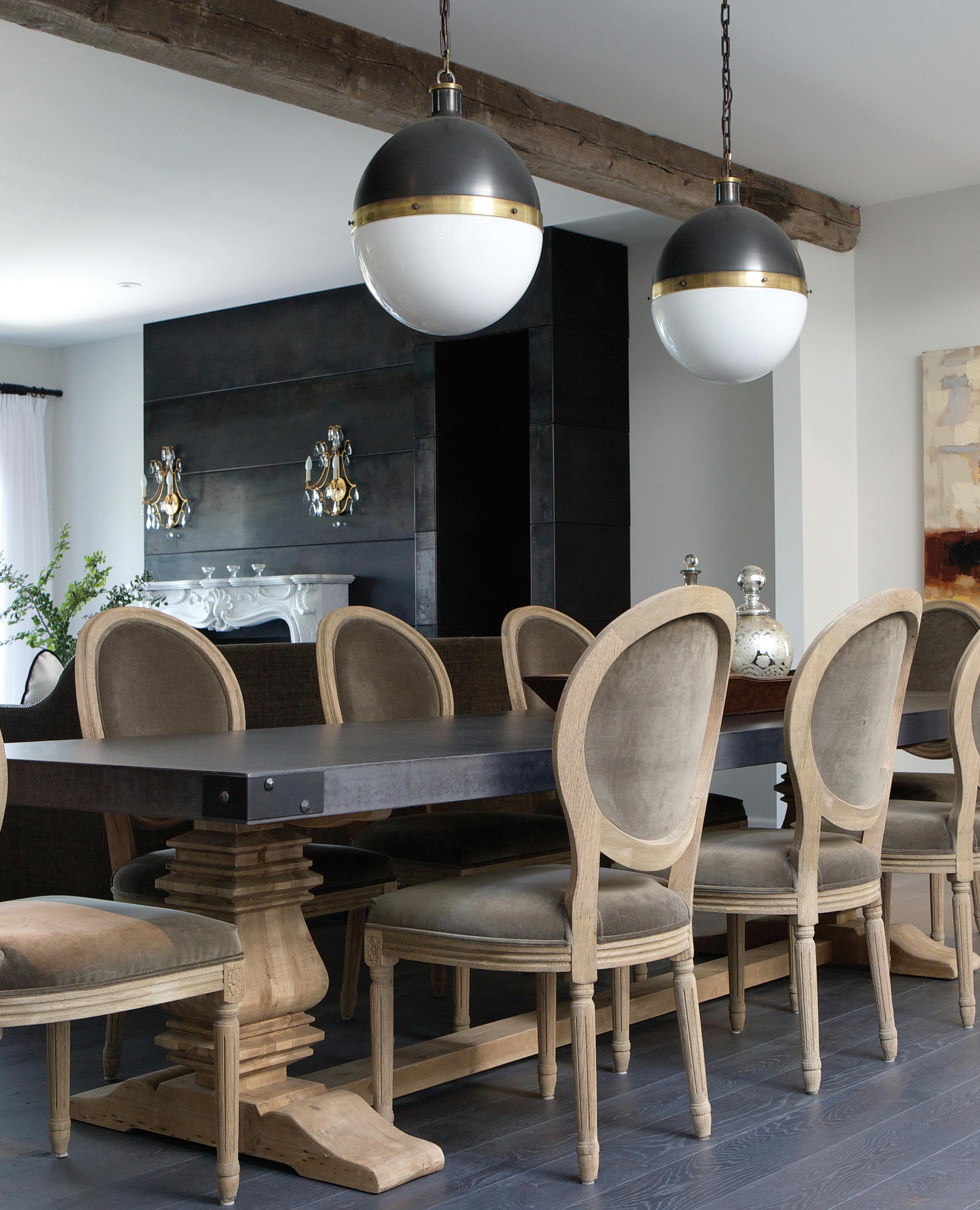 We recommend leaving approximately 30"- 36" between the bottom of your fixture and the surface of your table. Choose a fixture with a width measuring between 1/2 and 3/4 the diameter of a round table.