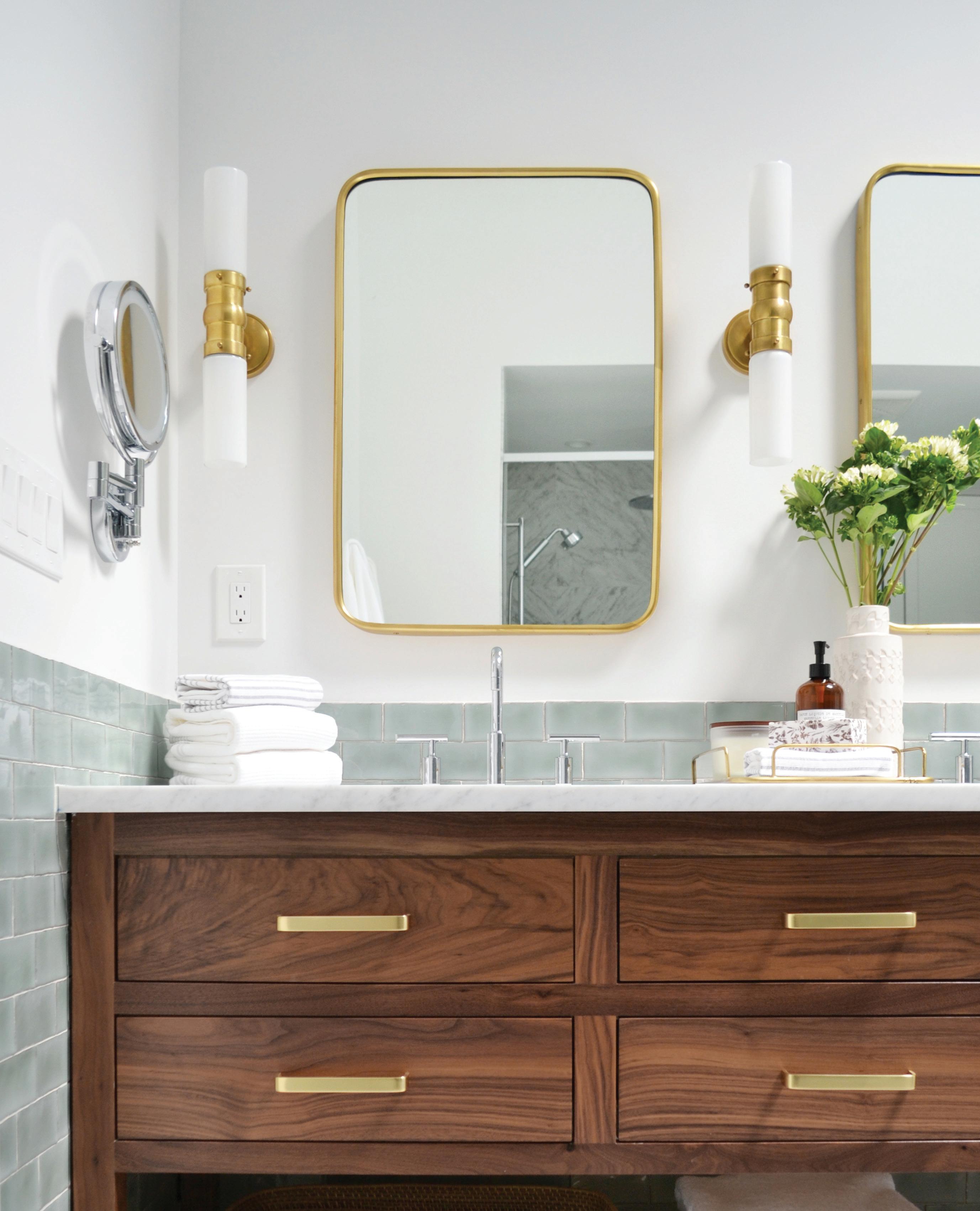 The ideal linear bath light will measure at least 3/4 the width of the mirror but not extend over its edges. For larger mirrors, consider mounting a pair of evenly-spaced linear sconces.