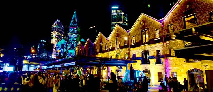 達令港的燈光秀、岩石區的小型藝術作品,各 種驚喜隨處可見,讓人流連忘返。孩子們可以參加 工作坊,體驗創作的樂趣;大人們則可在欣賞燈光 藝術的同時,享受街頭藝人的表演和美食。