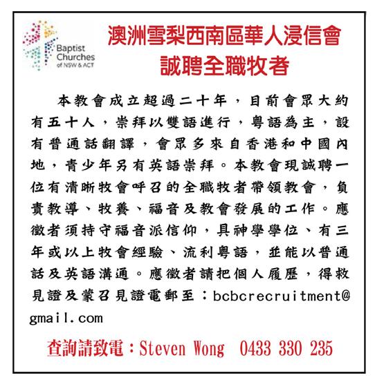 澳洲基督教新生命事工協會 ABN 48003922352