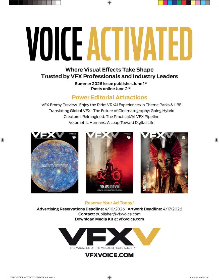 P.S. You can continue to catch exclusive stories between issues only available at VFXVoice.com. You can also get VFX Voice and VES updates by following us on X at @VFXSociety and VFX_Society on Instagram.