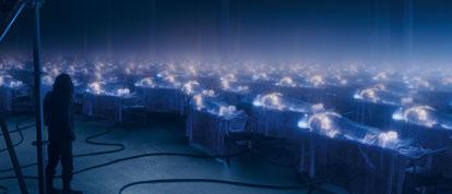 Rate (HFR) in The Way of Water to sharpen visual clarity, especially in fast-moving and underwater sequences. This ongoing technical ambition continues with Fire and Ash (see article, page 68), which introduces the fire-worshipping Ash Clan, demanding new challenges in volumetric rendering, fire simulation, and incorporating new, highly detailed environments that further ground the fantastical world of Pandora in photorealistic detail. In many ways, the Avatar series fundamentally redefines what audiences accept as “real” in cinema, proving that photoreal digital characters could carry entire films emotionally, not just technically. Cameron’s insistence on performance capture as acting – not animation – legitimized virtual production as a serious filmmaking tool and pushed the industry to invest billions in LED volumes, real-time rendering and neural rendering technologies. The films don’t just raise the VFX bar; they move it into a different arena entirely.