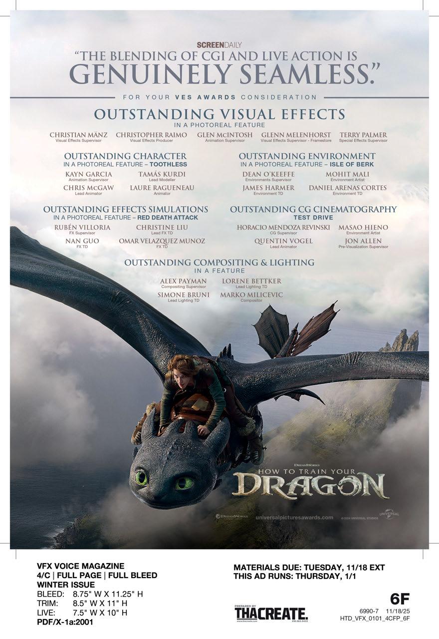 P.S. You can continue to catch exclusive stories between issues only available at VFXVoice.com. You can also get VFX Voice and VES updates by following us on X at @VFXSociety and on Instagram @vfx_society.