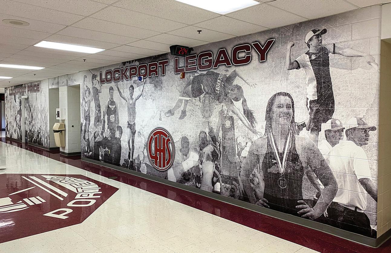 Enhance your athletes’ experience and pride with inspirational, motivating images and phrases that are applied to flat and curved surfaces. Brick walls, doors, windows, lockers, columns fences and more - both indoors or out! Customize designs using your school logo, colors, photographic images, motto and graphic theme.