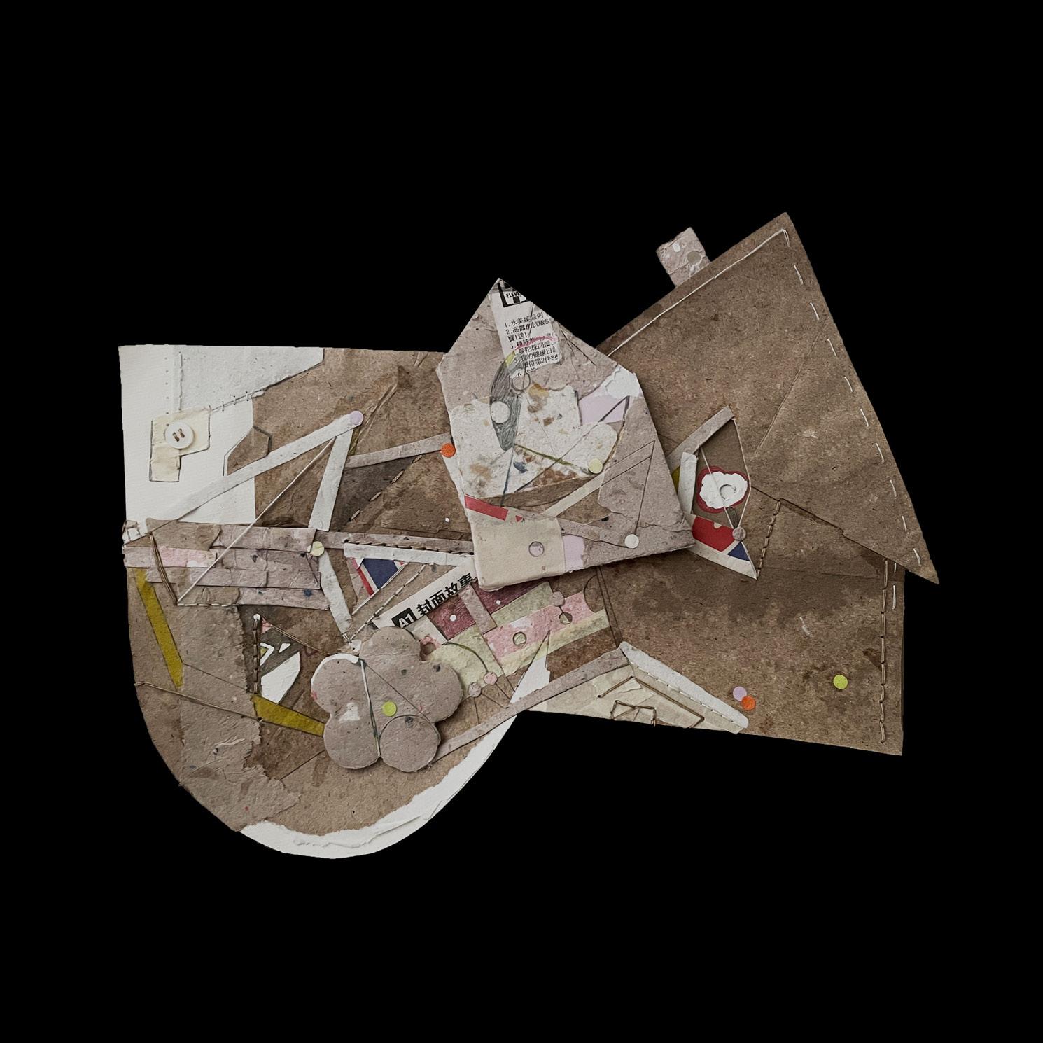 The two collages were made with cardboard and handmade papers. It was about the imagination of my inner self’s home and tree. I also doodled on top of it.