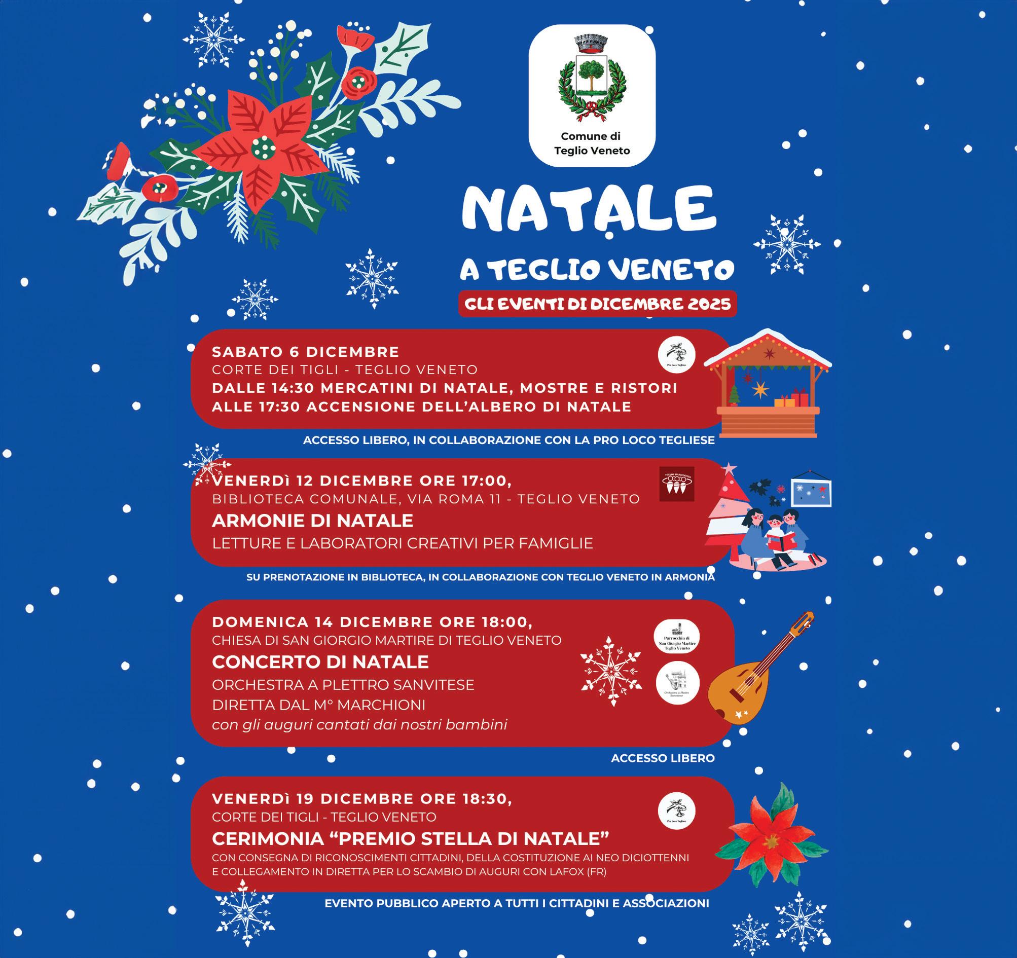za siano la base di una buona amministrazione. Rispondere alle vostre curiosità e ai vostri bisogni è il modo migliore per costruire insieme il futuro del nostro paese. Con l’avvicinarsi delle festività natalizie, desidero rivolgere a ciascuno di voi un augurio sincero: che questo periodo porti serenità nelle vostre famiglie e speranza per l’anno nuovo. Continueremo a lavorare con determinazione, ma anche con il cuore, perché la forza di Teglio Veneto è la sua comunità. Grazie ancora per la fiducia e la collaborazione.