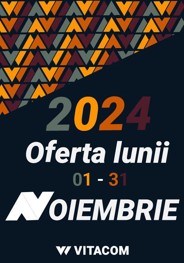 VITACOM ELECTRONICS SRL, STR. 1 MAI, NR. 8, APAHIDA, CLUJ CUI: R0214527, REG. COM: J12/ 1992/ 1991, CAPITAL SOCIAL: 1.000.000 LEI PREZENTA OFERTĂ ESTE VALABILĂ ÎN PERIOADA 1 NOIEMBRIE - 31 NOIEMBRIE 2024, ÎN LIMITA STOCURILOR DISPONIBILE. PREŢURILE SUNT EXPRIMATE IN LEI, NU CONŢIN TVA ŞI TIMBRU VERDE. ÎNCEPĂND CU 01.01.2013 COMANDA MINIMĂ FACTURABILĂ ESTE DE 15 LEI + TVA. DEOARECE MĂSURILE DE PRECAUŢIE AU FOST LUATE, NU NE ASUMĂM RESPONSABILITATEA PENTRU EVENTUALELE GREŞELI DE TIPAR. IMAGINILE PRODUSELOR DIN PREZENTA OFERTĂ SUNT CU TITLU INFORMATIV ŞI NU CREEAZĂ OBLIGAŢII CONTRACTUALE. PRETURILE DIN PREZENTA OFERTĂ SUNT VALABILE DOAR PENTRU DESTINATARI. OFERTA SPECIALĂ SE ADRESEAZA NUMAI PARTENERILOR NOŞTRI, DREPT URMARE DORIM SĂ 0 TRATAŢI CA ATARE.