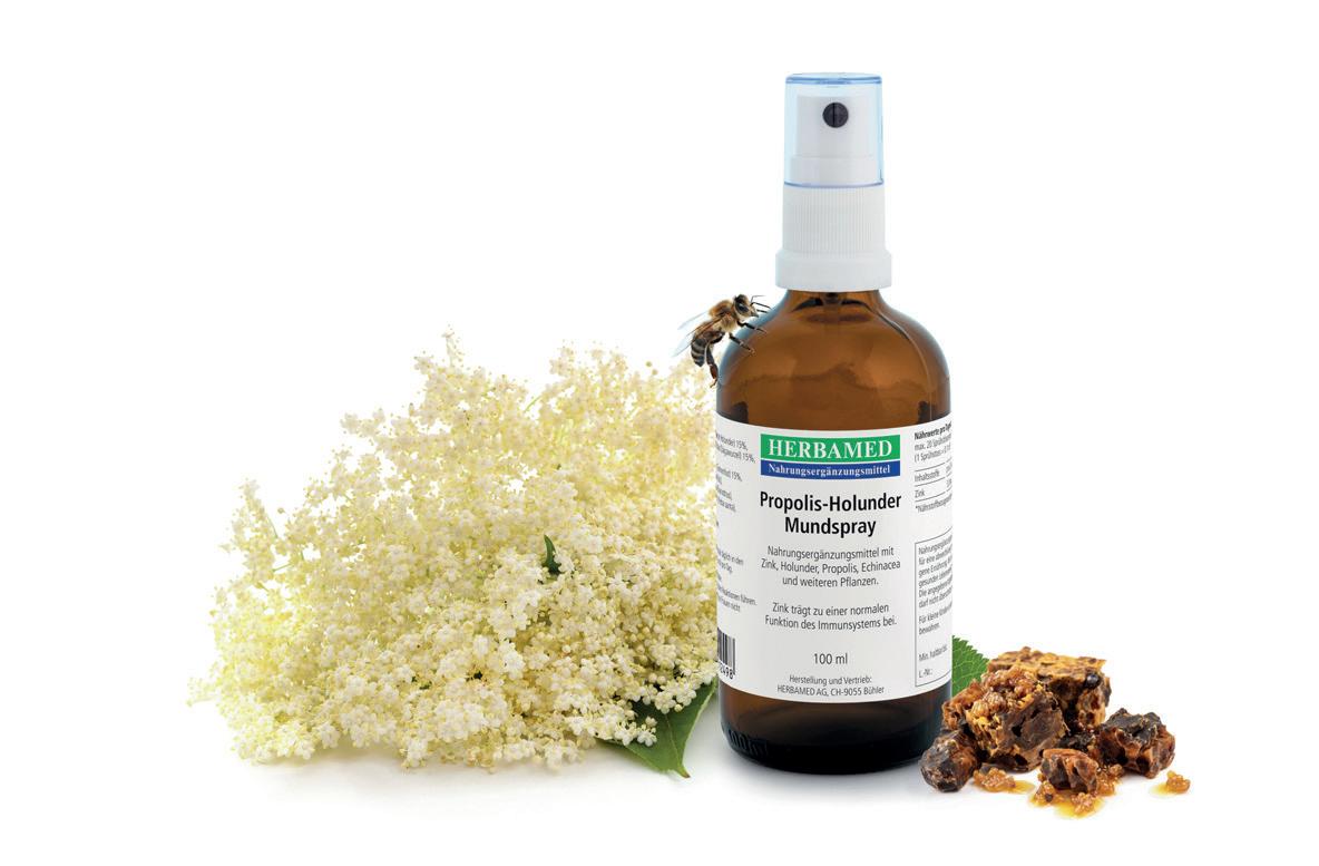 Nahrungsergänzungsmittel mit Zink, Holunder, Propolis, Echinacea und weiteren Pflanzen.