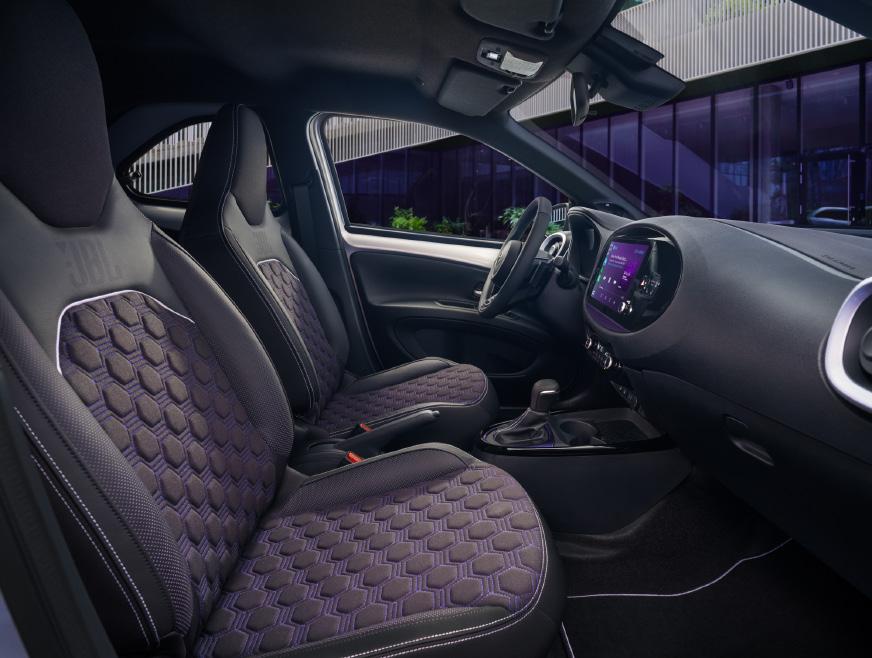 Toyota España lanzó el nuevo acabado Toyota Aygo X Cross JBL Limited Edition, que destaca por su diseño interior y exterior, asimimismo posee en su alto nivel de equipamiento. En cuanto al interior, tiene como novedad una tapicería de cuero parcial en sus asientos con unas costuras en color morado, que son exclusivas en esta edición limitada JBL. A su vez, también ofrece unas alfombrillas con costuras que van a