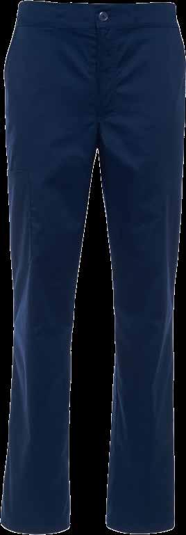 Modernaus kirpimo mote riškos siaurėjančios darbo kelnės. Juosmuo su guma, užsiūtas priekio kantelis, 3 patogios šoninės ir viena užpakalinė kišenė. Gaminys neglamžus ir lengvai prižiūrimas.