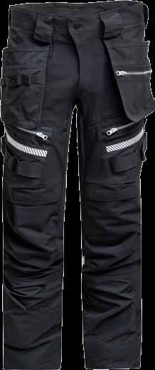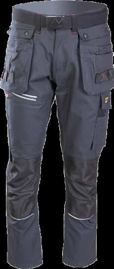 Šiuolaikiškos darbinės kelnės yra ergonomiško dizaino su tampria medžiaga labiausiai judesiais apkrautose vietose. Trigubos siūlės maksima liam patvarumui. 16 kišenių talpiam susidėjimui.